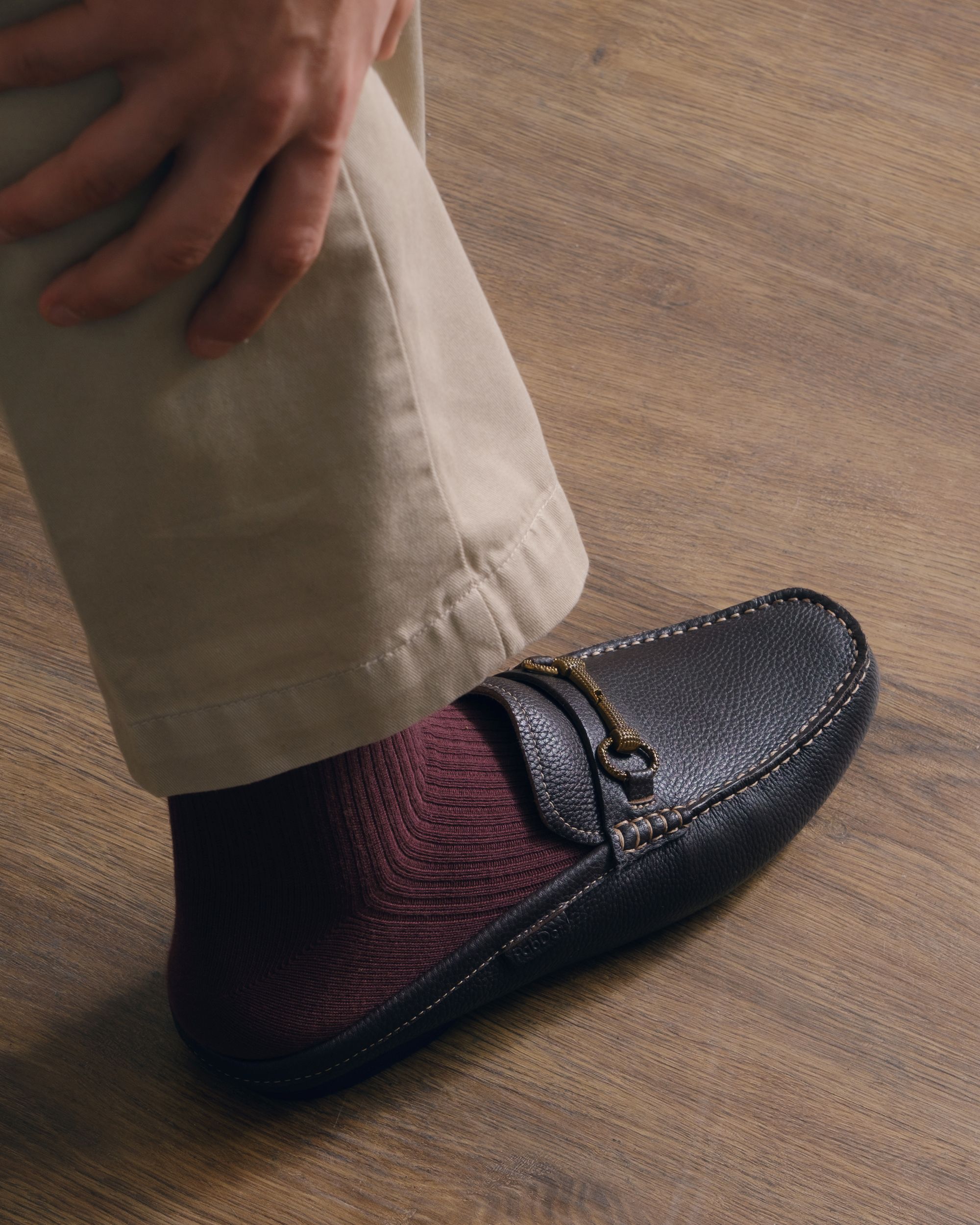 Pabder half shoes with soft insole, open heel cap, rubberized sole, with clean toe cap finish, embossed leather finishing. Decorated with metallic horse-bit.