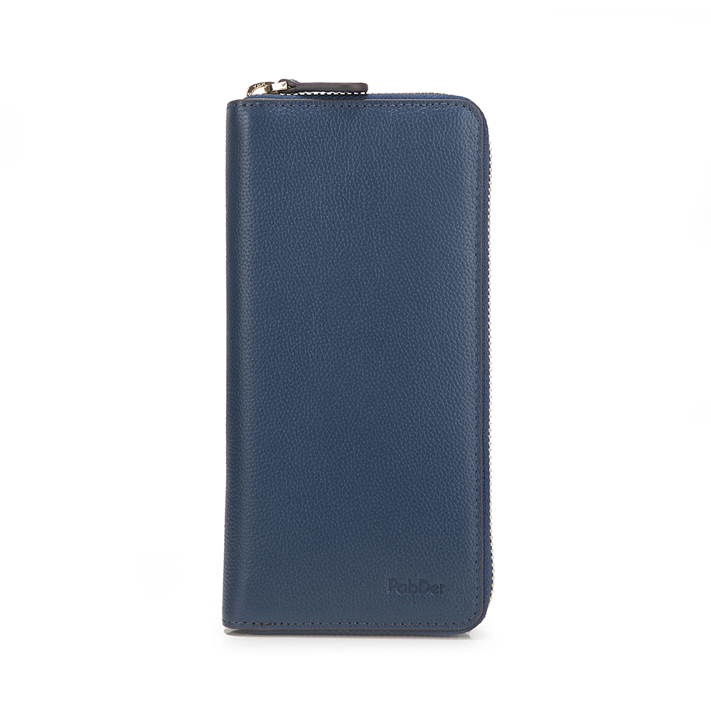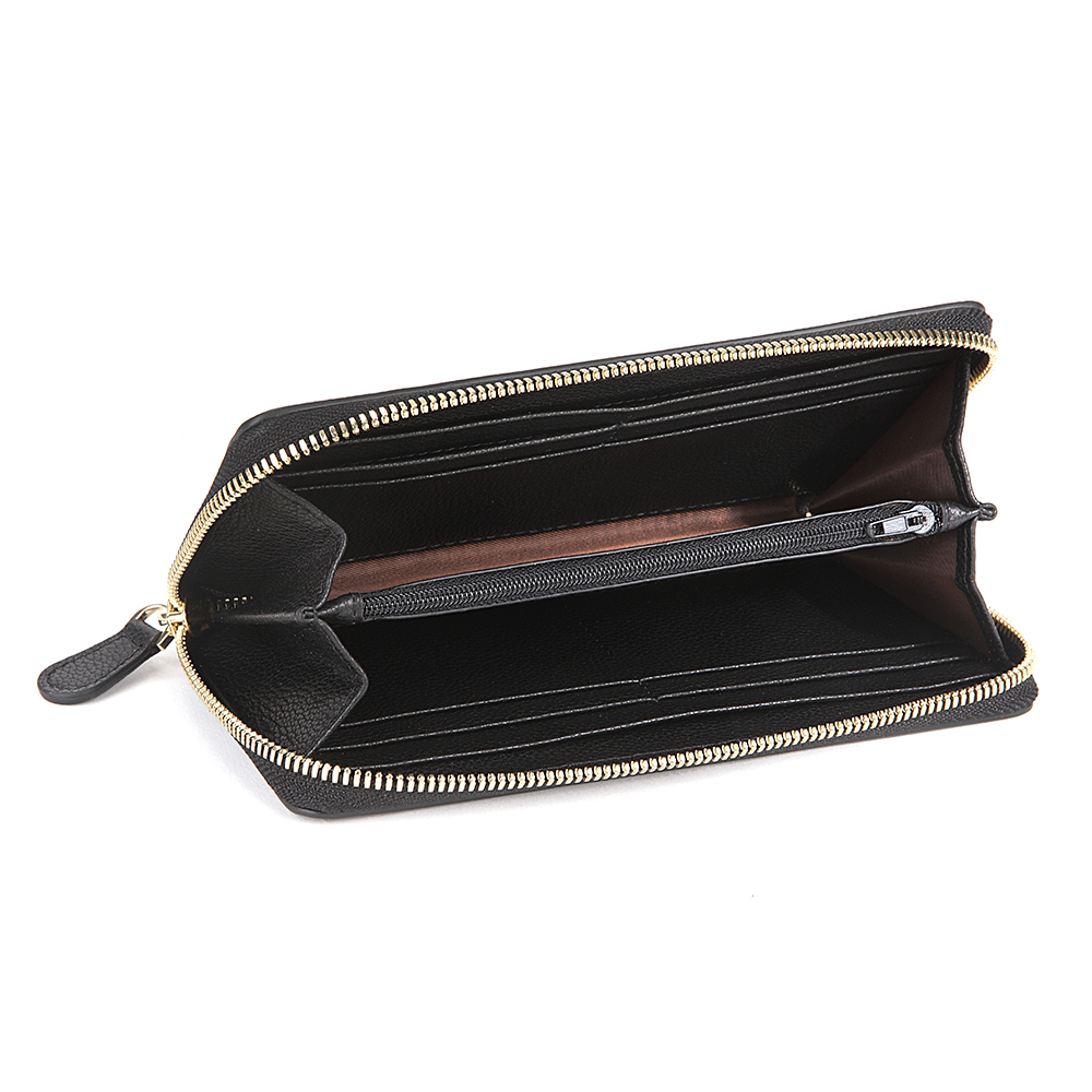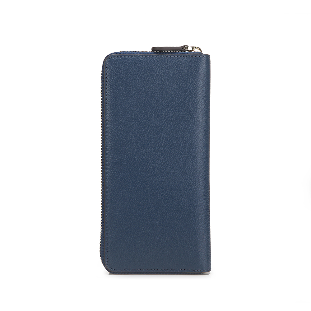 Long wallet, zip closure embossed leather wallet with 8 slot compartment with 1 large inner zip pocket and 2 large compartment for bills.