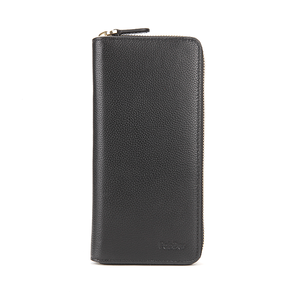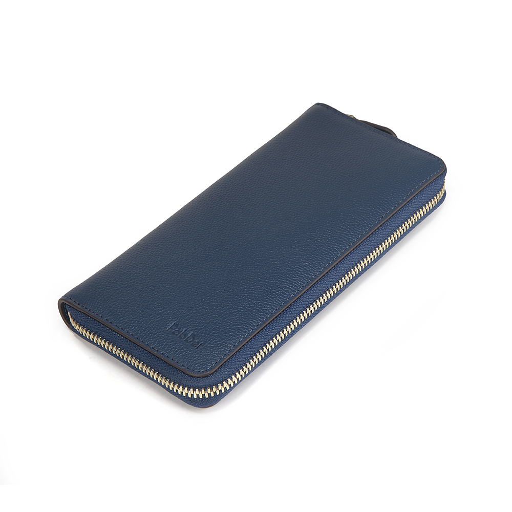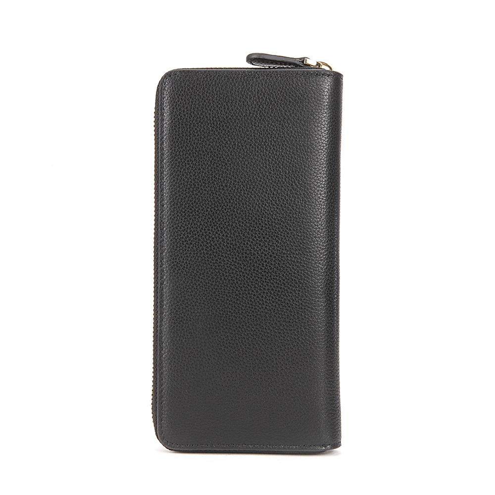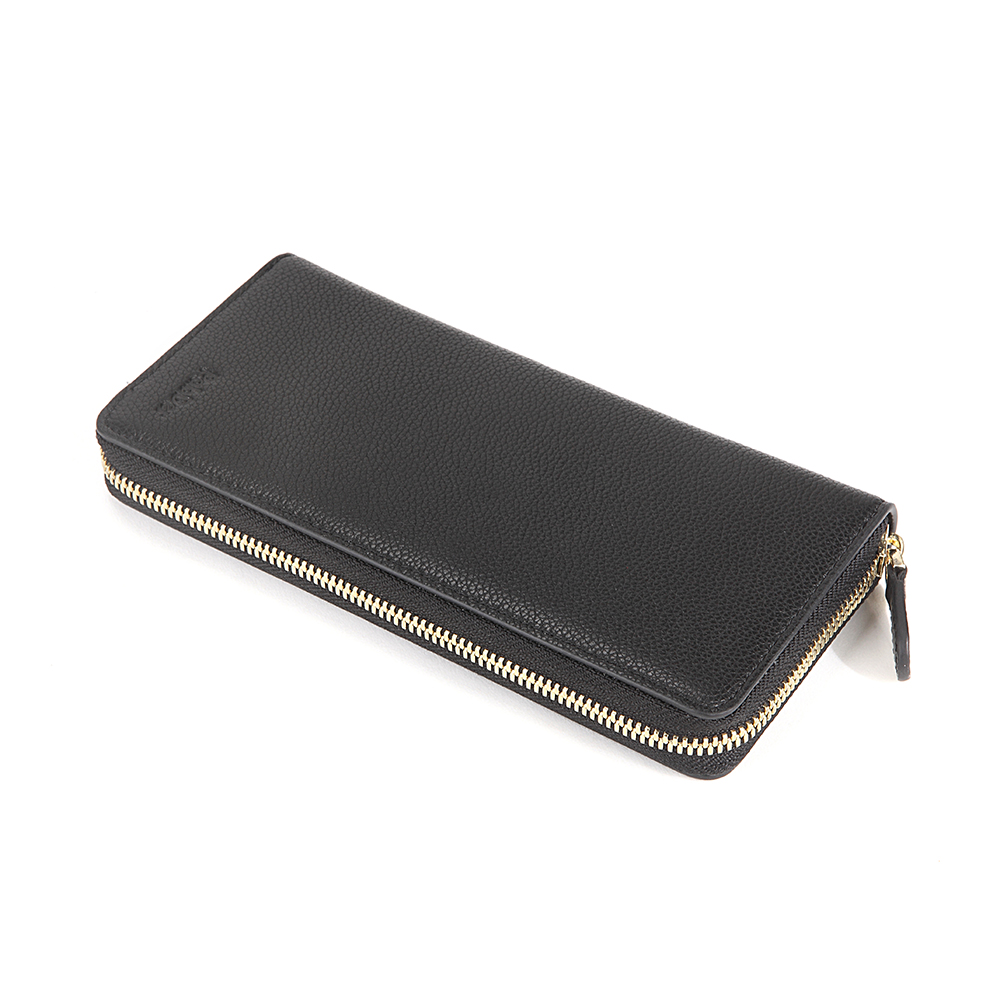 Long wallet, zip closure embossed leather wallet with 8 slot compartment with 1 large inner zip pocket and 2 large compartment for bills.