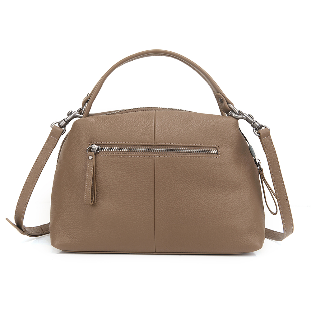 Ladies Medium bucket bag/ wristlet bag. Top zipper closure with extra wide opening for easy access. Top loop handle with extra detachable shoulder strap for crossbody carry. Made with genuine soft- smooth leather. Dimension 11.5in x 5in x 8in