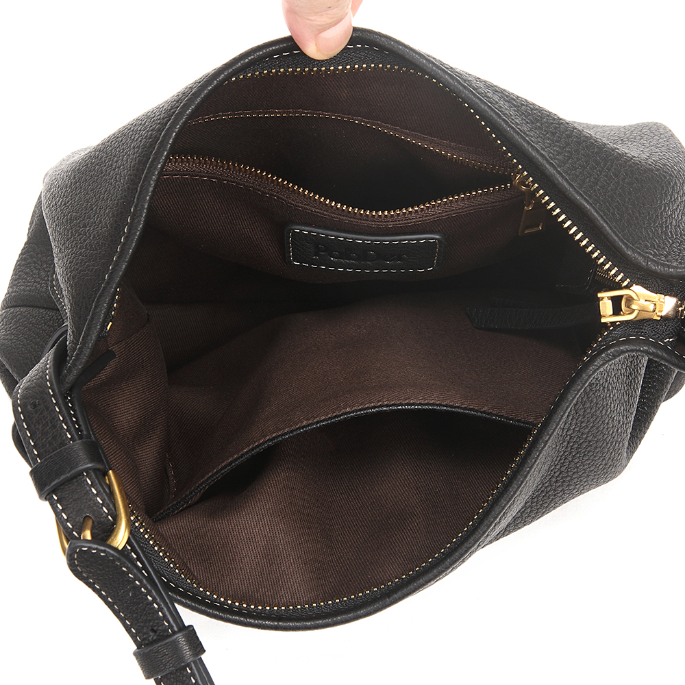 Genuine Deerskin leather purse with adjustable leather shoulder strap. 1 large top zipper opening with assorted inner pockets.