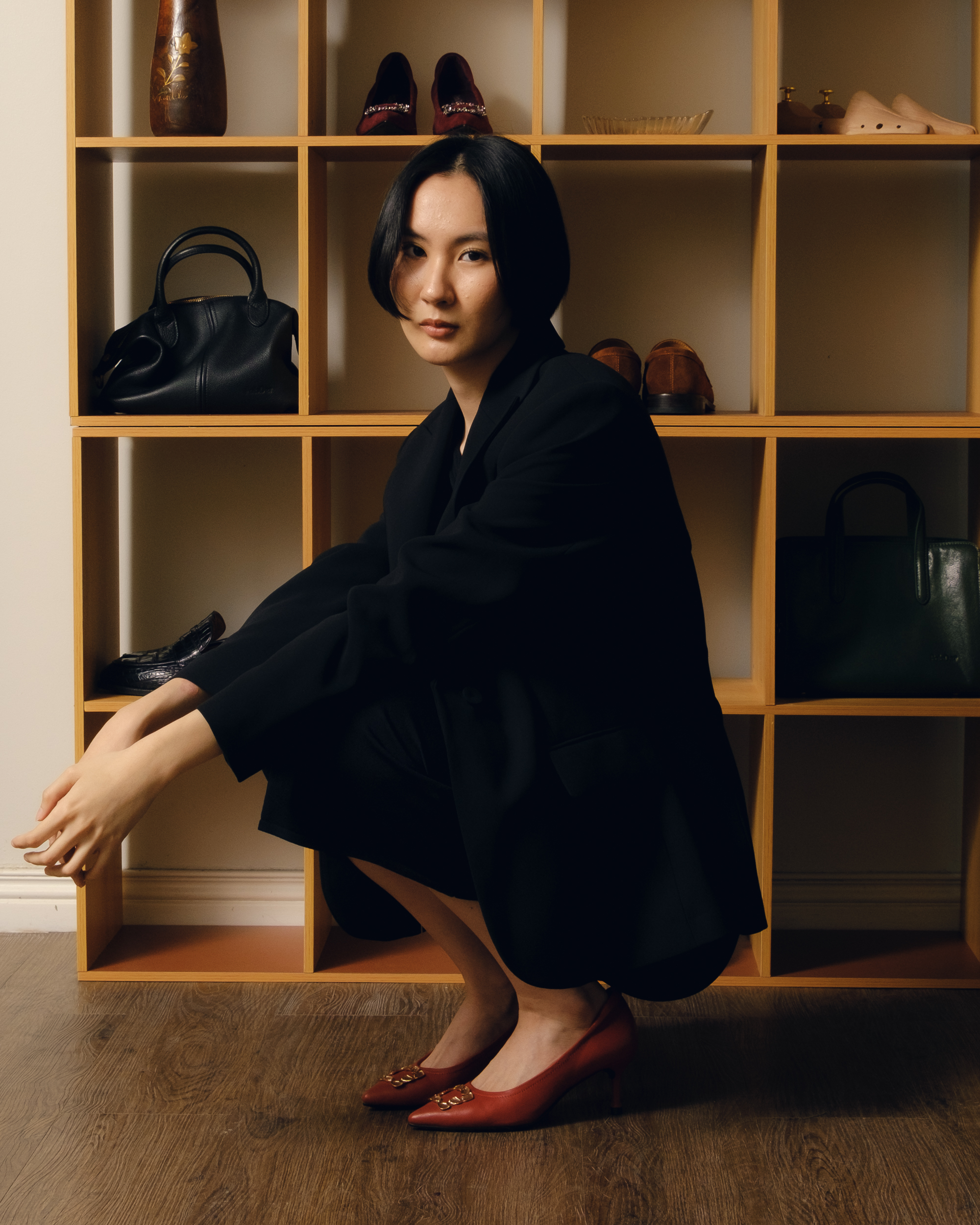 Ladies pointed shoes with 2in high heels made of genuine leather, padded ankle pillow and soft insole with buckle bronze metal decorations.