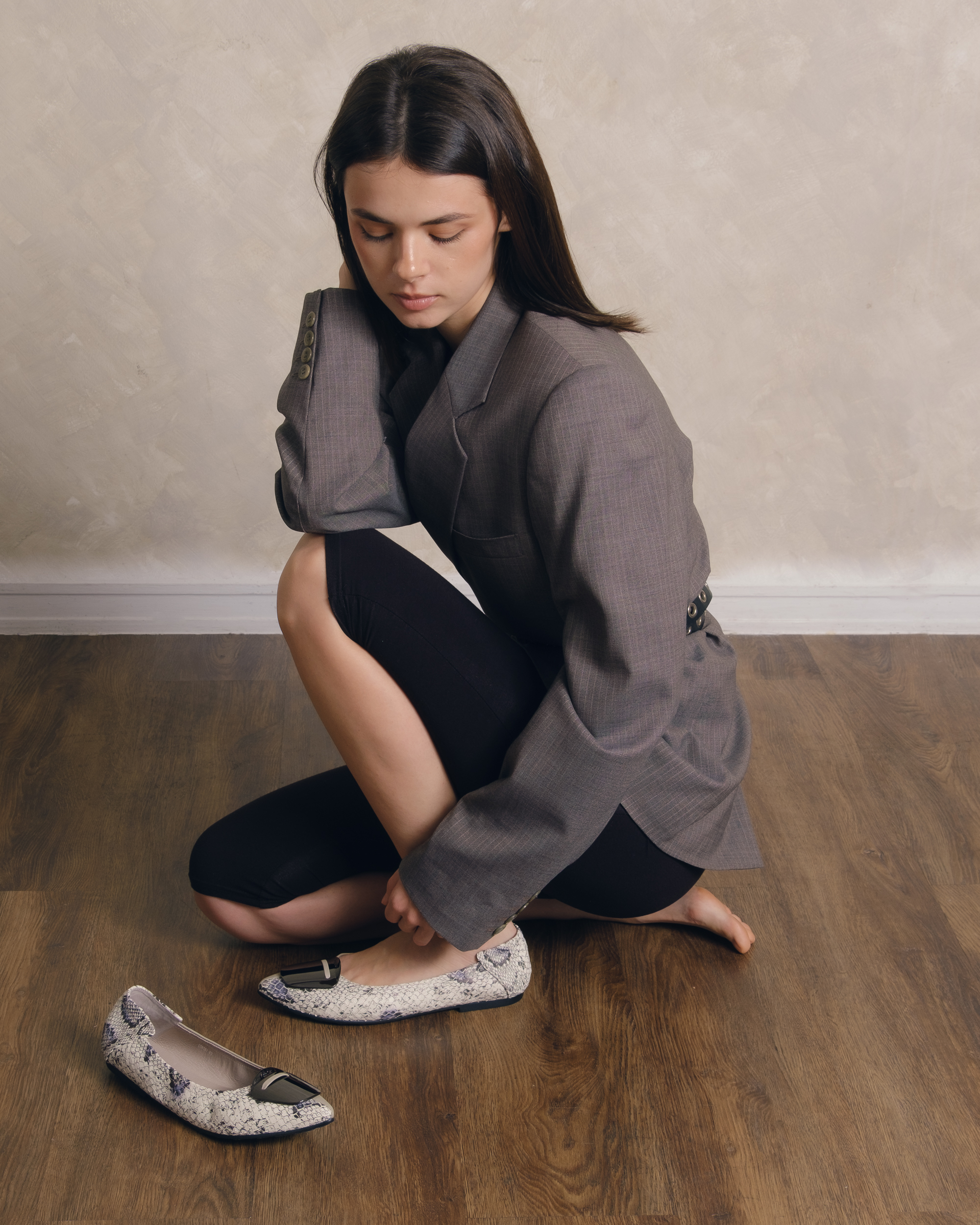 Donna pointed flat shoes with metal toe decor design, made of genuine leather, soft insole and bendable sole.
