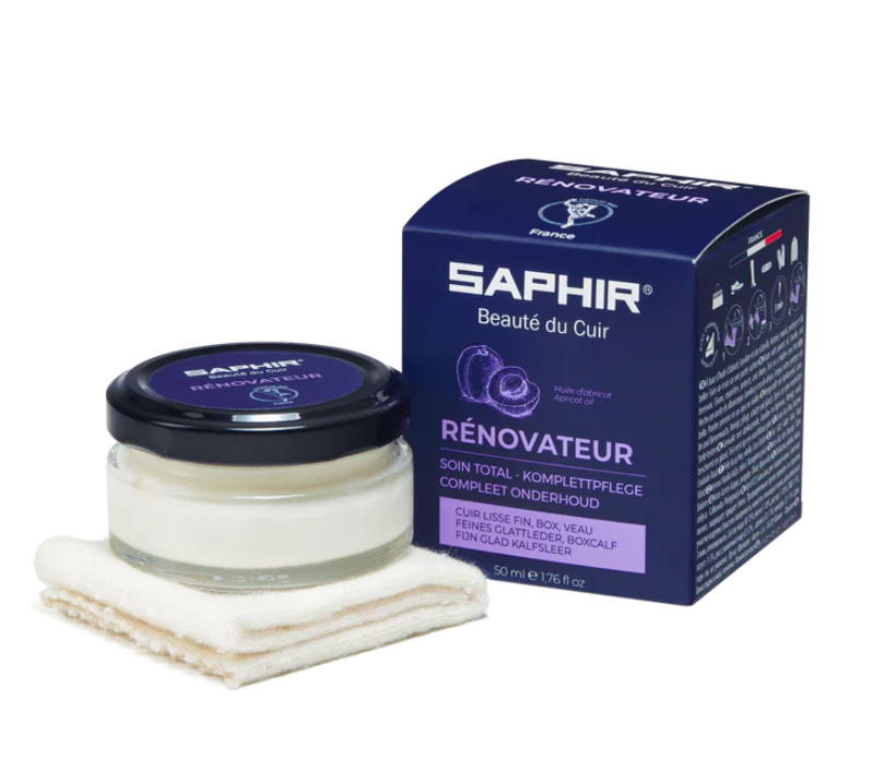 Exclusive formula based on beeswax and apricot oil. It cleans, nourishes in depth, protects and shines. Particularly suited for smooth, fine leather, box, calf.