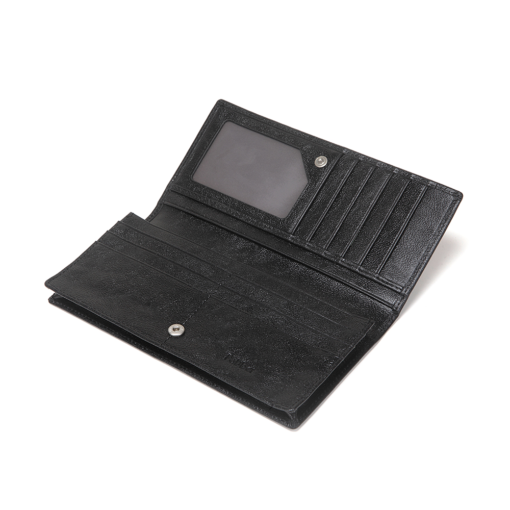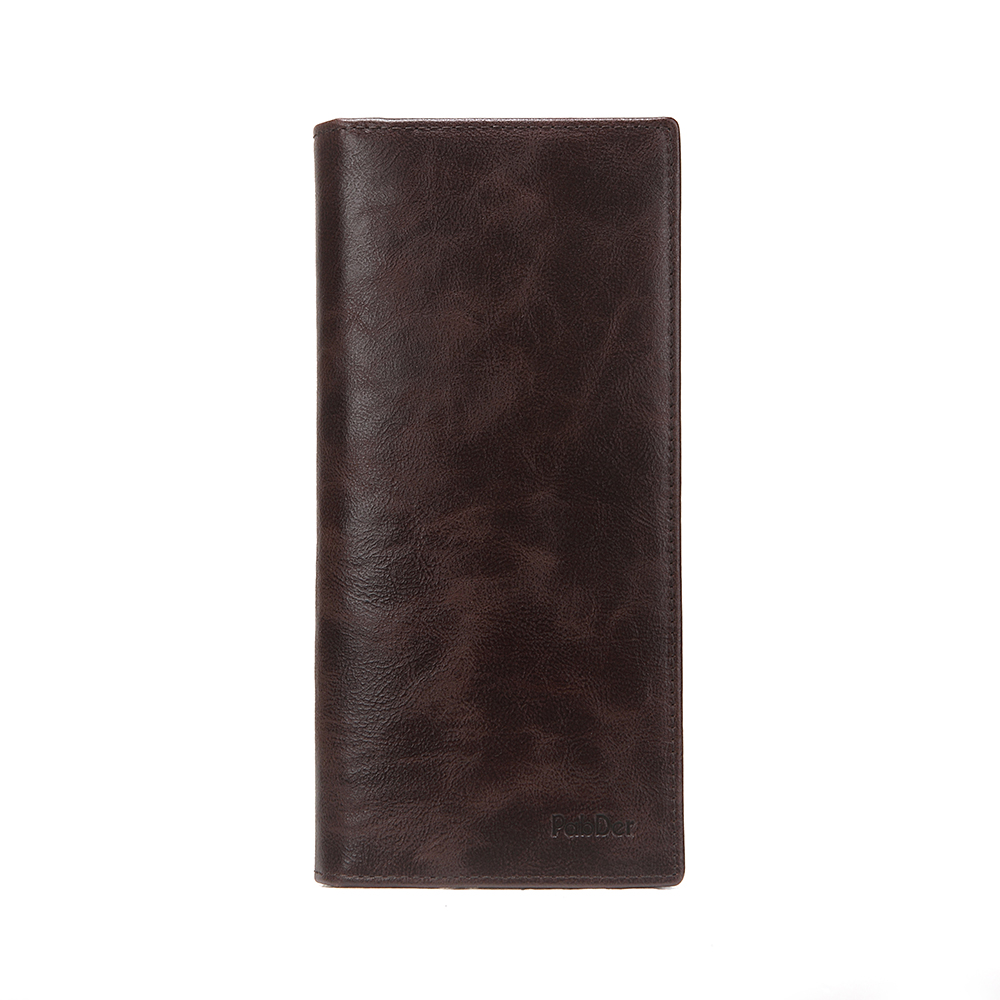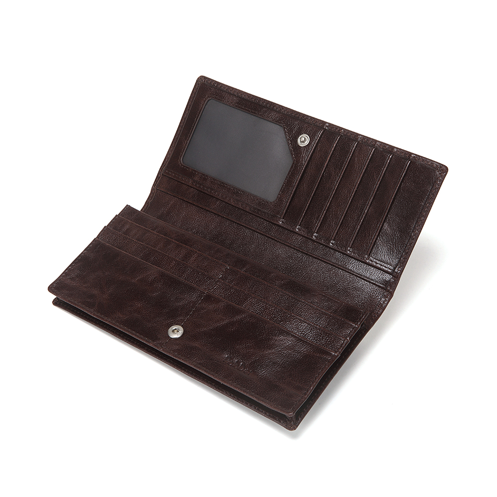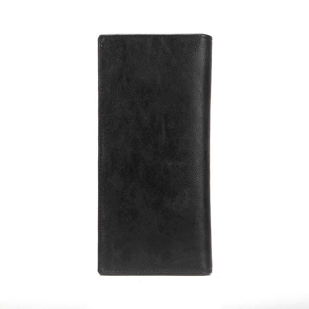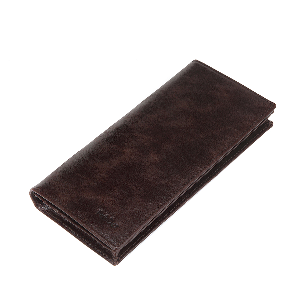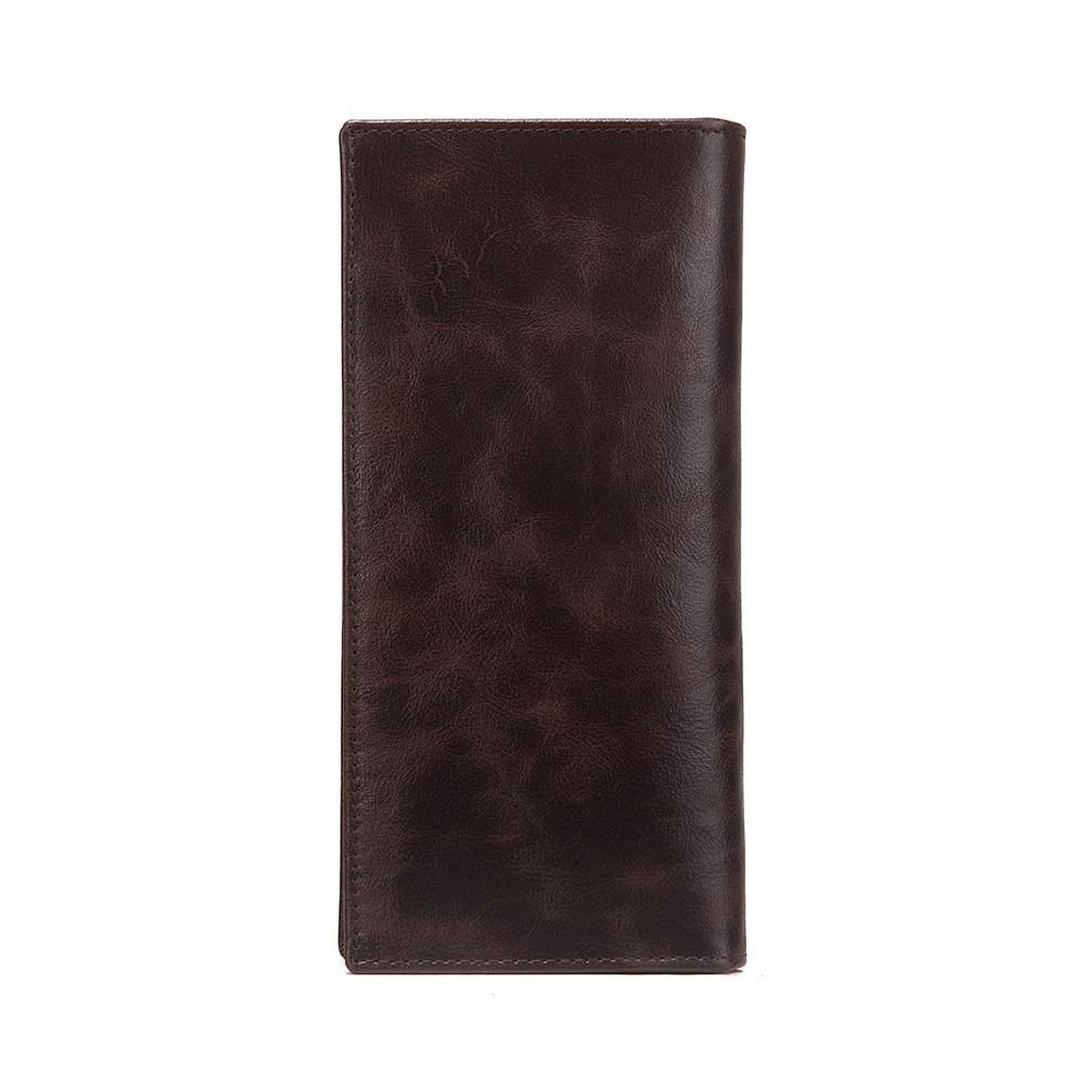 Men's long wallet made of 100% genuine leather, waxy leather, fold design, inner bill compartment, embossed logo and multiple card holder slots. Dimension: Length: 7.5 inches Base: 0.6 inches Height: 3.6 inches