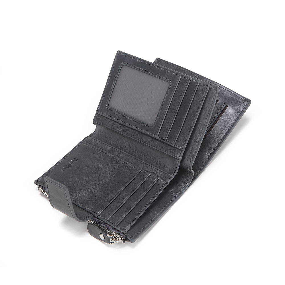 Very spacious leather wallet with 15 card slots with side mini zipper coin pouch. Small removable card pouch on the front. Made with genuine leather.