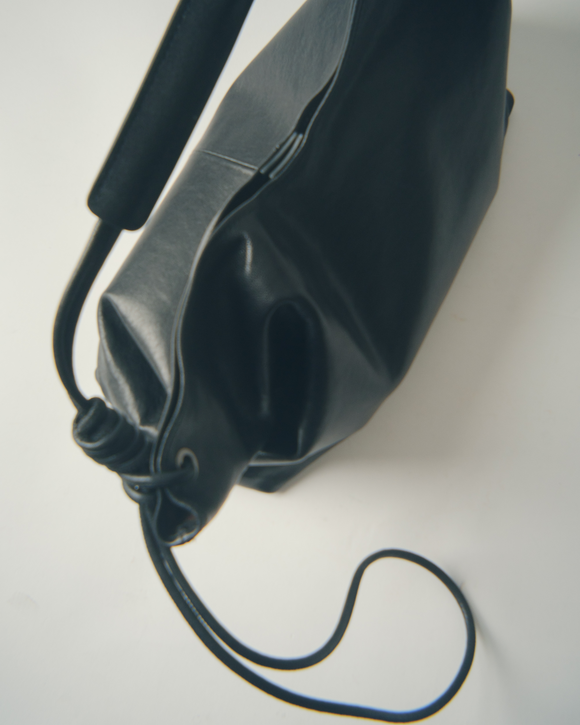 Leather lambskin very smooth and lightweight shoulder bag with adjustable strap, central top magnetic closure. Dimensions: 11.5 x 12in x 4.5