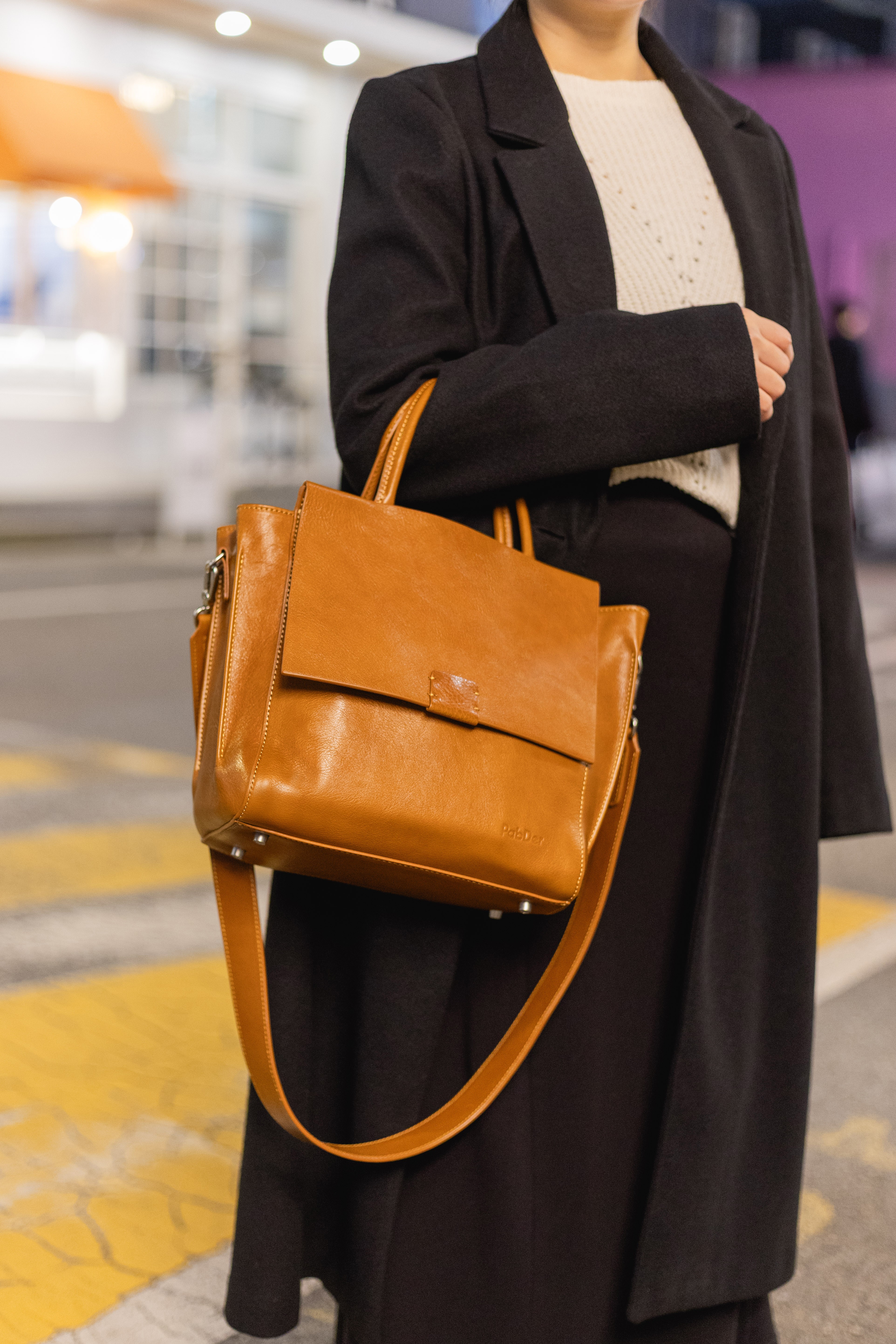 Spacious rectangular top handle purse with 1 large inner zippered compartment and 1 metallic front compartment. Comes with adjustable and detachable shoulder carry strap. Made with genuine leather. Dimensions: Length: 10in x Height: 9in x Base: 5in 530g