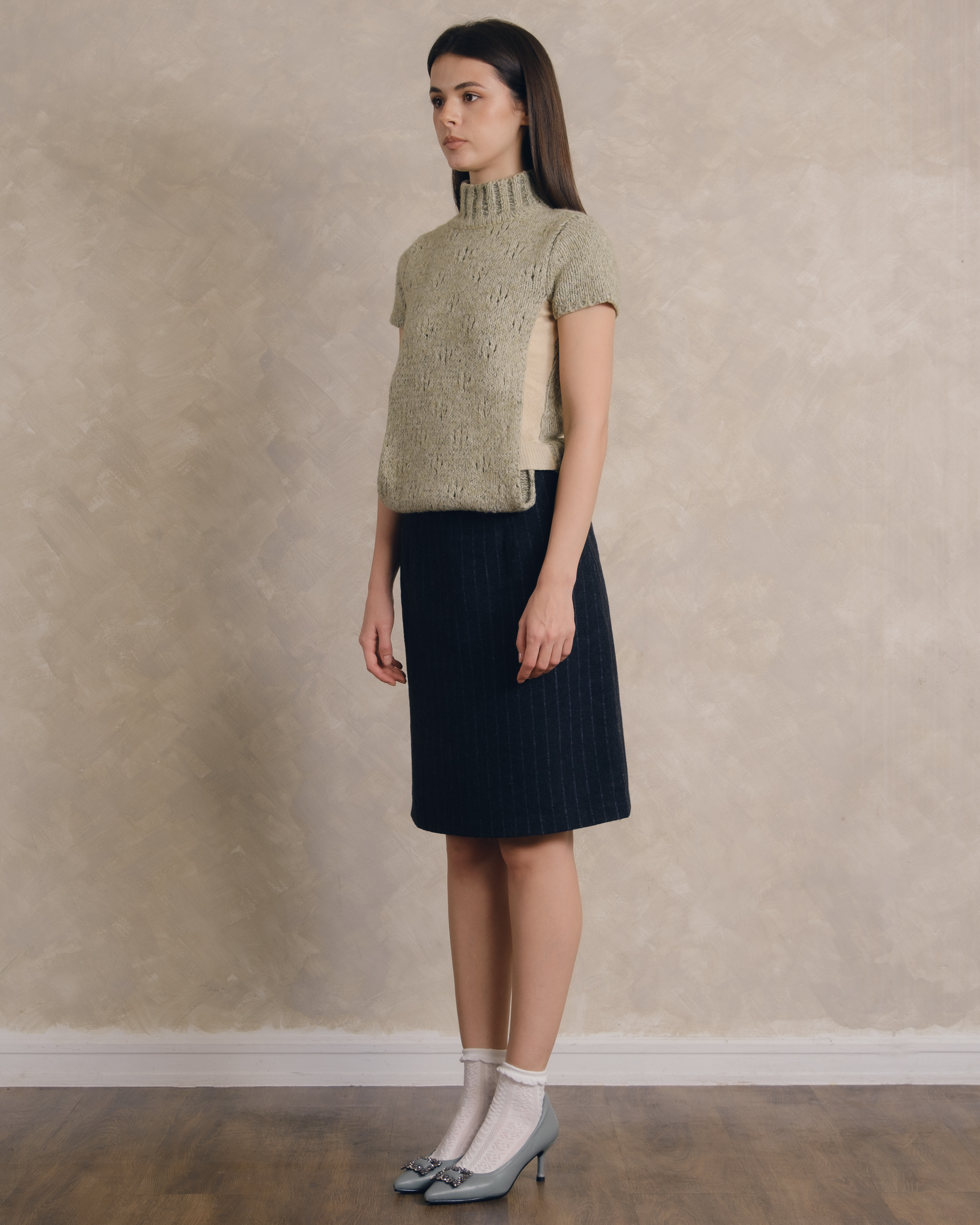 Ladies pointed shoes with 2.5in high heels made of genuine leather, padded heel cap and soft insole with buckle rhinestone decorations.